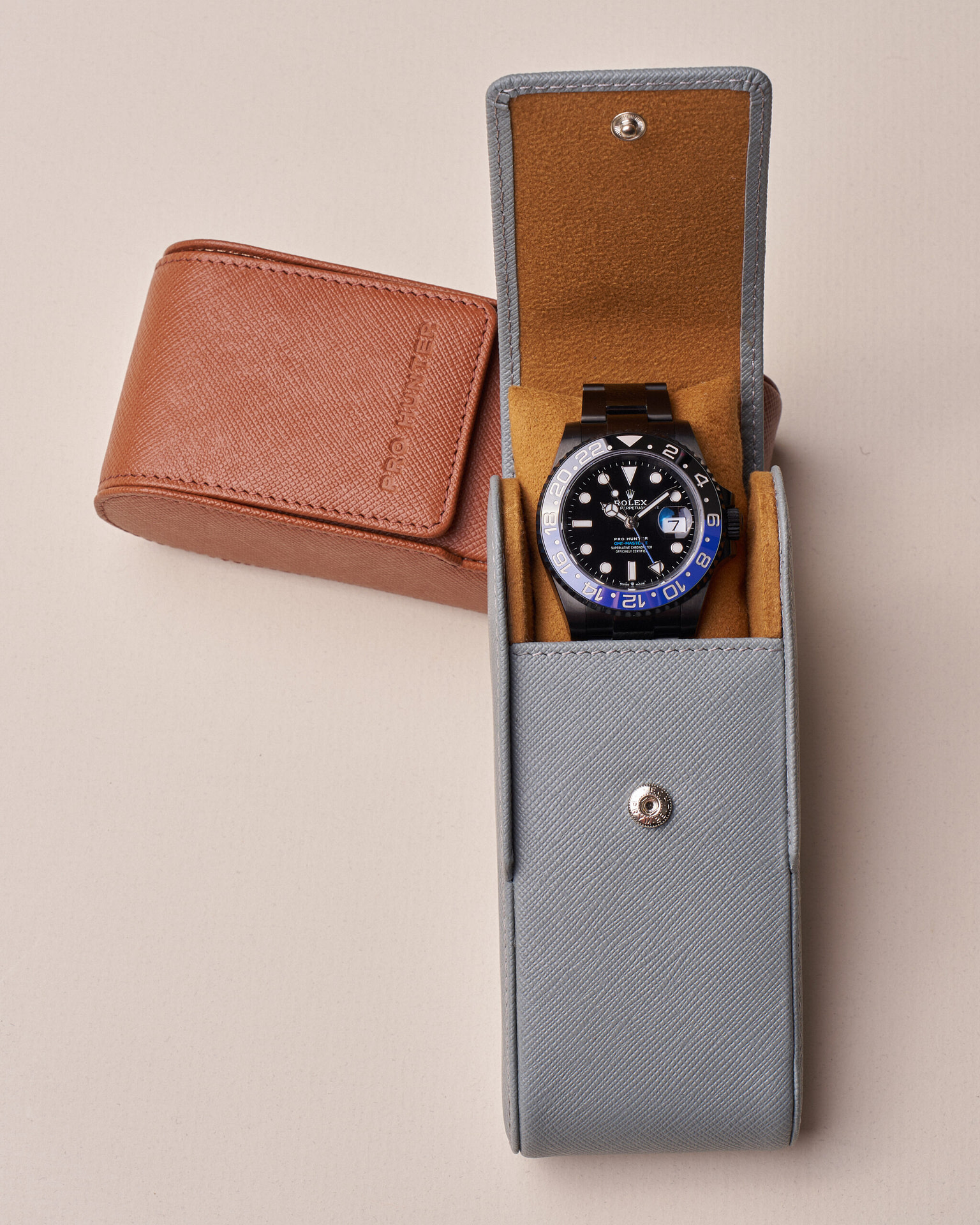 Discover the new colours of our Crusader Watch Travel Case, the perfect addition for storing and protecting your finest timepiece whilst away on holiday or business. Handcrafted using the finest Saffiano leather, hand stitched and hand embossed, paired with a new watch cushion. A stylish yet practical case for watch collectors on the go. The Crusader is crafted to hold watches up to the size of our largest sports model comfortably.